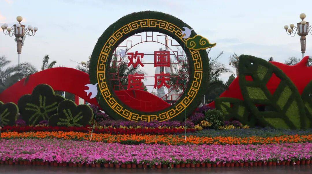 正在邦庆节降临之际,市城管局机合园林工人正在都会街道摆花配景,营制欢娱、喜庆的节日气氛。